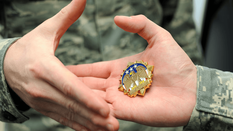 Challenge coins are traditionally presented quietly and respectfully. A typical award looks like this: